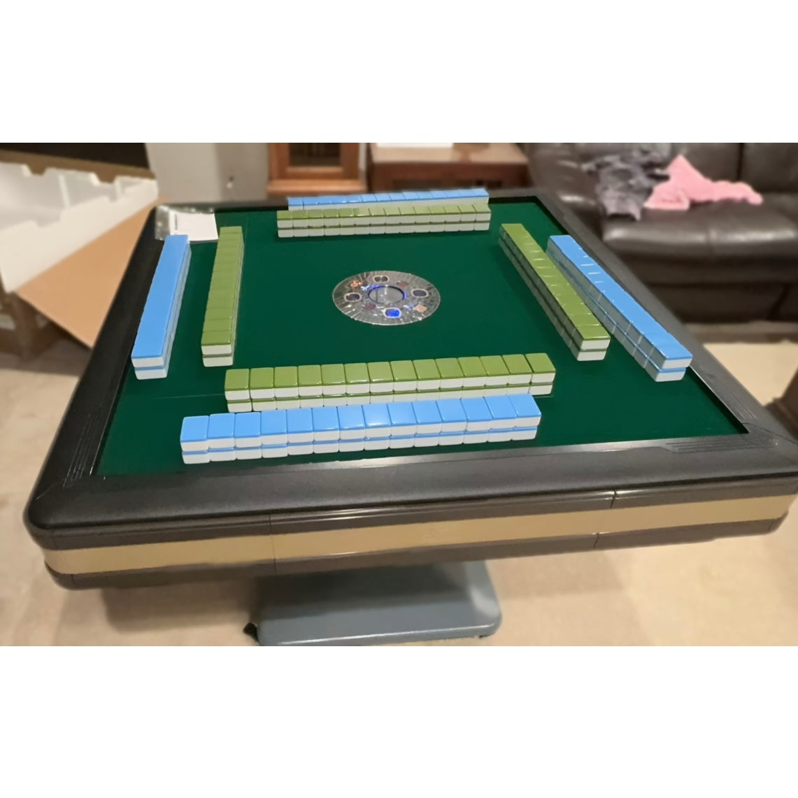 Includes 2 Sets of Mahjong Tiles(Blue&Green) and Table Cover