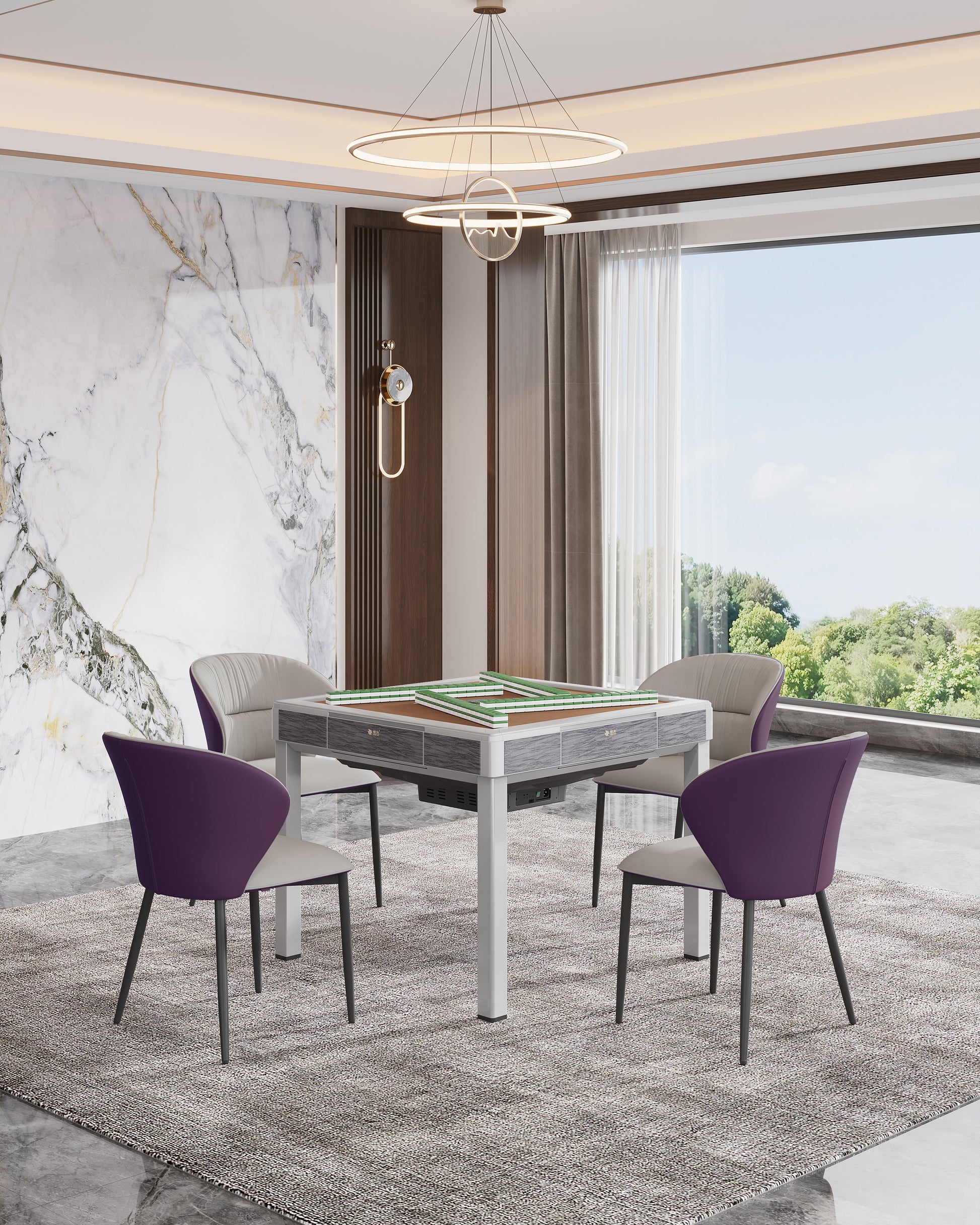 Includes 2 Sets of Mahjong Tiles(Blue&Green) and a Table Cover